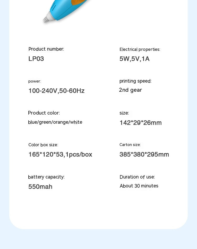 Bring your ideas to life with this compact and user-friendly 3D Printing Pen, designed for creativity on the go. With a lightweight plastic body and an ergonomic size of 142 × 29 × 26 mm, it fits comfortably in your hand, making it ideal for beginners, students, and creative hobbyists.